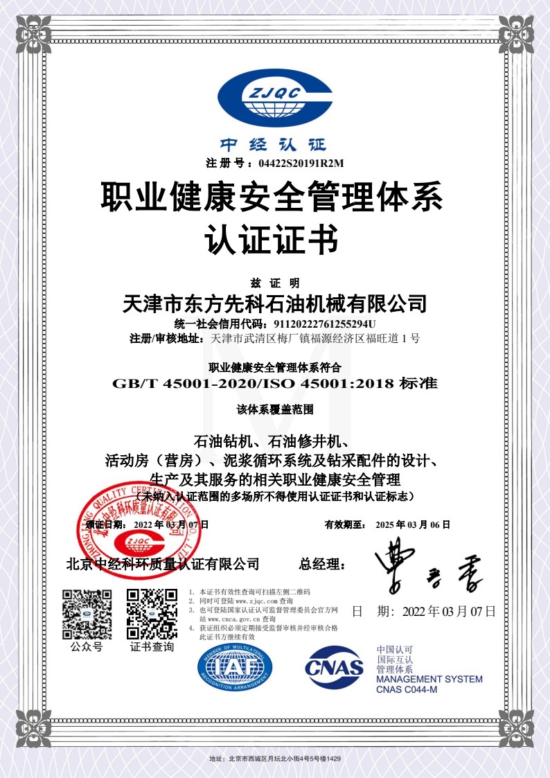 職業(yè)健康安全管理體系認(rèn)證證書(shū)英文